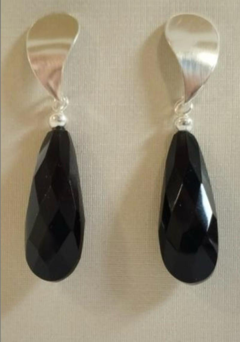 Brincos de Prata com Pingente de Cristal Transparente com Inclusões Pretas